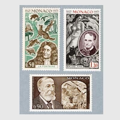 50c:作家フォンテーヌ(Jean de la Fontaine, 1621 - 1695)生誕350年 / 90c:作曲家サン・サーンス(Charles Camille Saint-Saens, 1835 - 1921)没後50年 / 1.30fr:詩人ボードレール(Charles-Pierre Baudelaire、1821 - 1867)生誕150年