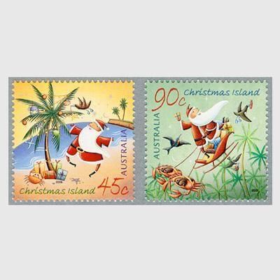 常夏の島では椰子の木がクリスマスツリーに、そしてカニがサンタクロースのソリを引いています。