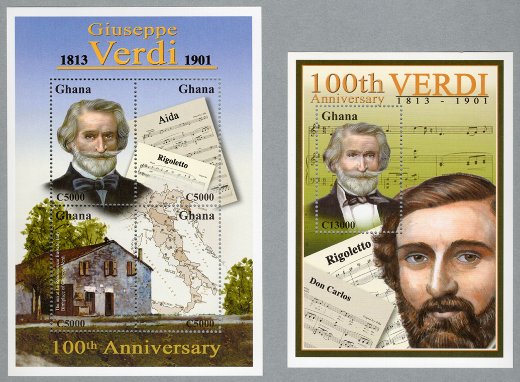 ガーナ 2001年作曲家ヴェルディ生誕100年・シート2種