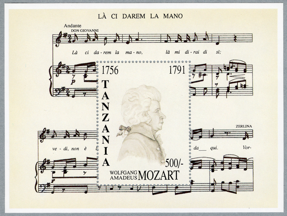 タンザニア 1992年作曲家モーツァルト没後200年/小型シート