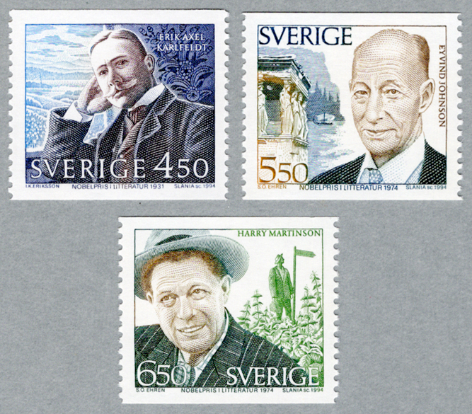 エリク・アクセル・カールフェルト(Erik Axel Karlfeldt 1864 - 1931) スウェーデンの詩人 1931年受賞 / エイヴィンド・ユーンソン(Eyvind Johnson 1900-1976)スウェーデンの作家 / ハリー・マーティンソン(Harry Martinson 1904-1978)スウェーデンの小説家