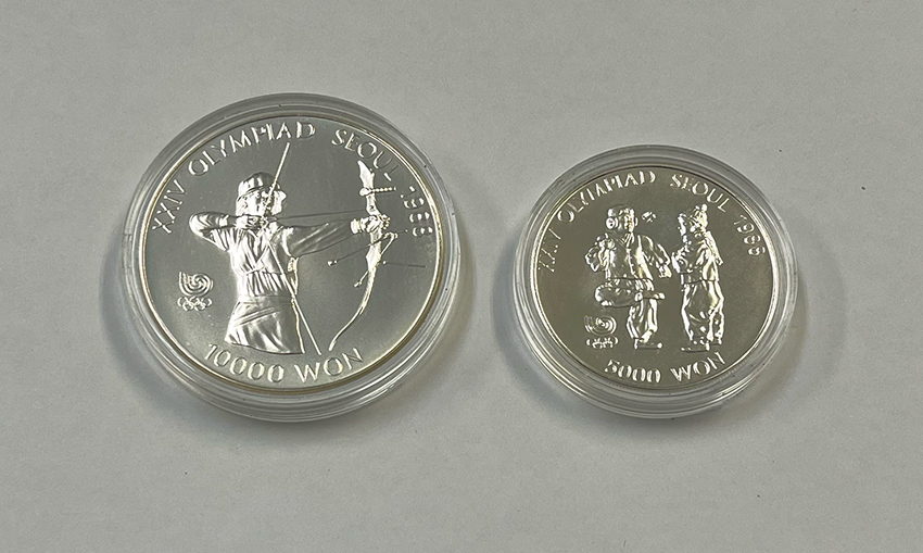 ソウルオリンピック記念銀貨 プルーフ2枚組(アーチェリー・チェギチャギ) 15,000円