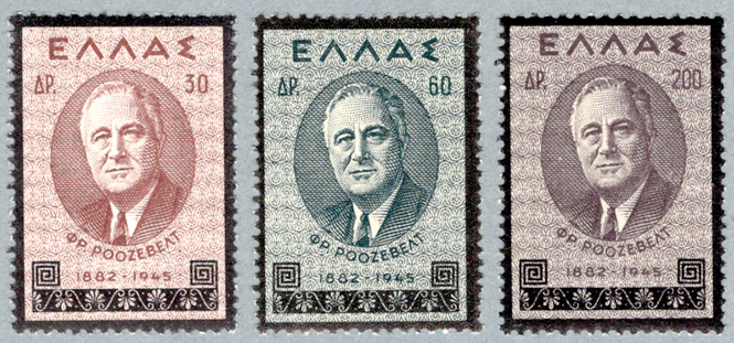 ギリシャ 1945年追悼フランクリン・ルーズベルト3種